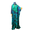 Design : Nuances de bleu et turquoise avec motifs uniques et détails verts au col.